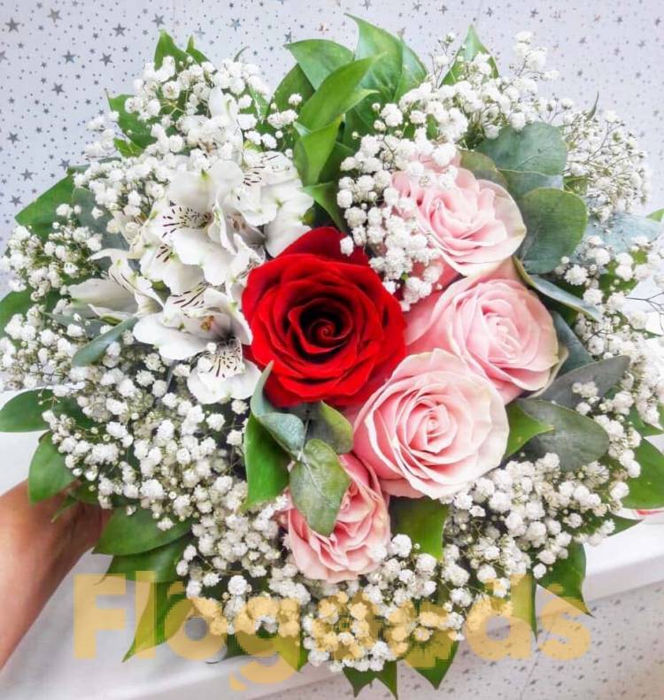 Такой необычный, «Нежный» букет из роз и гипсофилы, является отличным комплиментом любимой. В его состав входят цветы высшего качества.