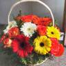 Корзинка из гербер и роз - создаст праздник и останется долго радовать получателя, благодаря тому, что цветы находятся в специальной губке пропитанной водой. Её нужно только изредка поливать.